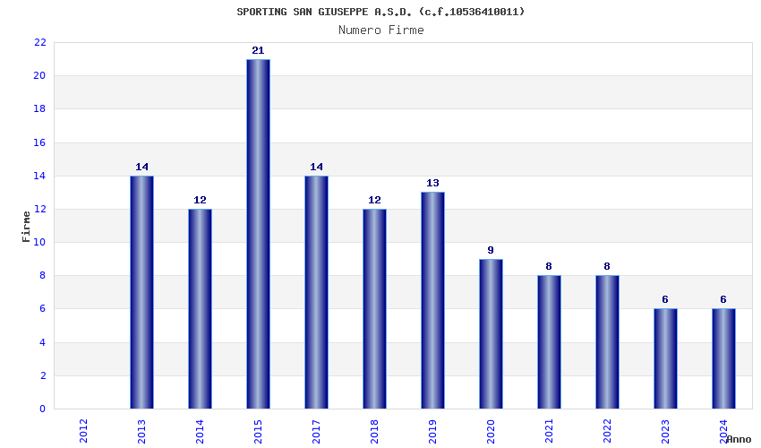 | Anno | Firme | Importi | Media | Naz. | Reg. | Prov. | Comu. |