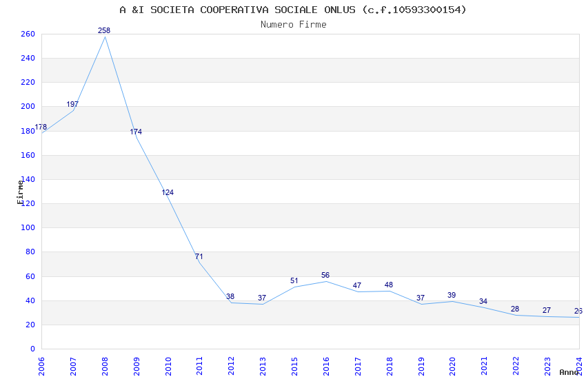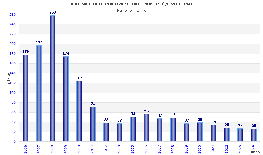 | Anno | Firme | Importi | Media | Naz. | Reg. | Prov. | Comu. |