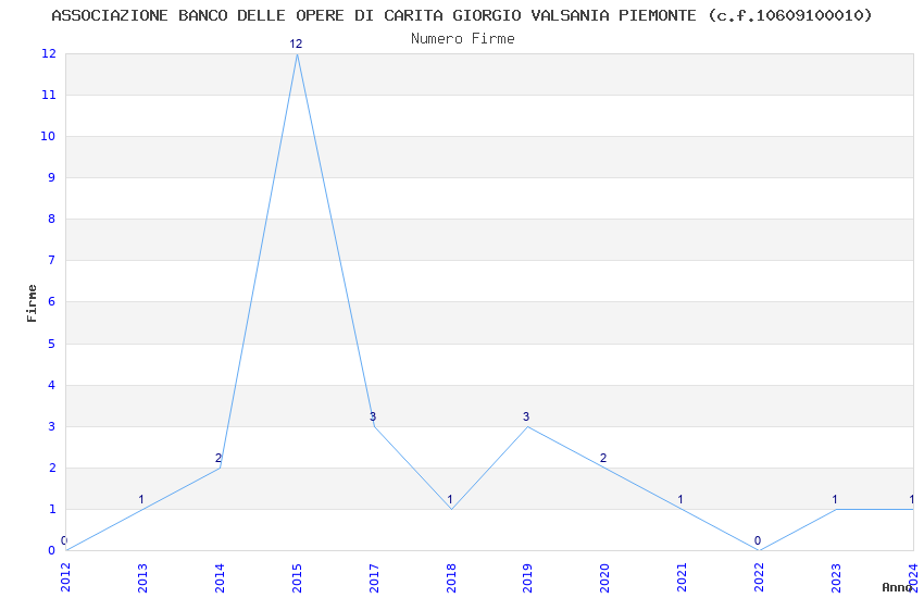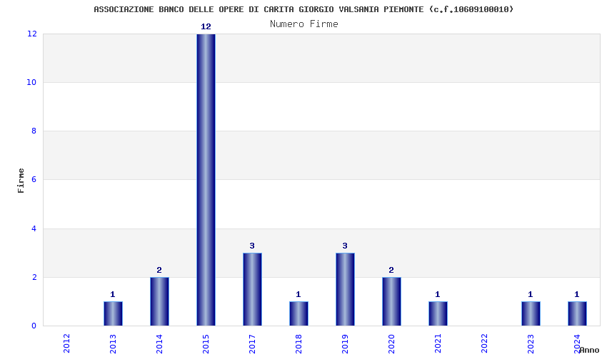 | Anno | Firme | Importi | Media | Naz. | Reg. | Prov. | Comu. |