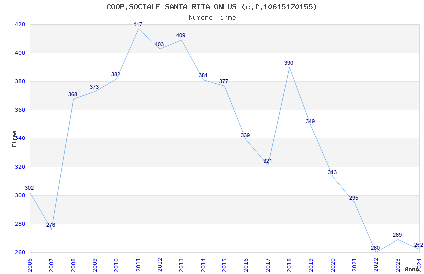 | 2011 | 417 | 13.572,98 | 32,55 | 2.601 | 625 | 325 | 262 |