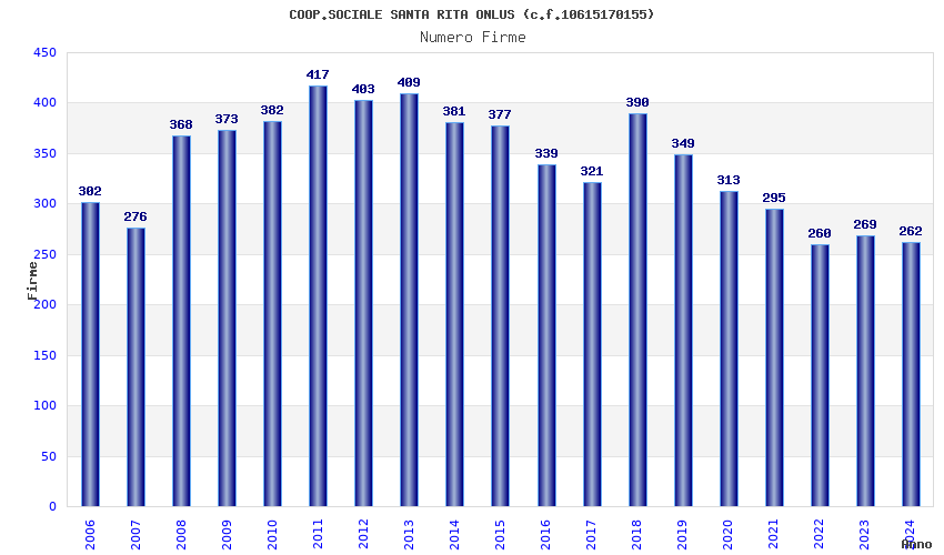 | Anno | Firme | Importi | Media | Naz. | Reg. | Prov. | Comu. |