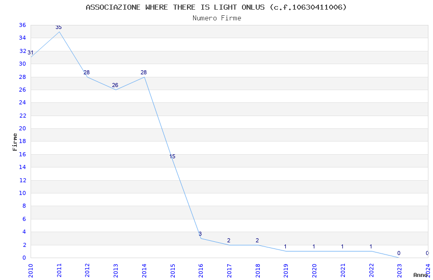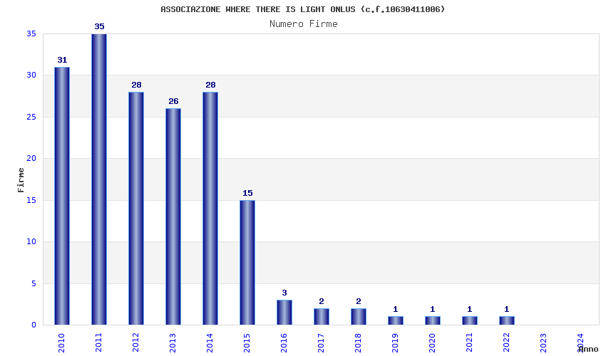 | Anno | Firme | Importi | Media | Naz. | Reg. | Prov. | Comu. |