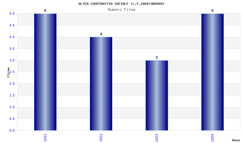 | Anno | Firme | Importi | Media | Naz. | Reg. | Prov. | Comu. |