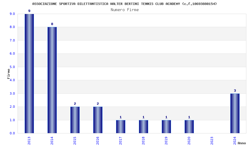 | Anno | Firme | Importi | Media | Naz. | Reg. | Prov. | Comu. |