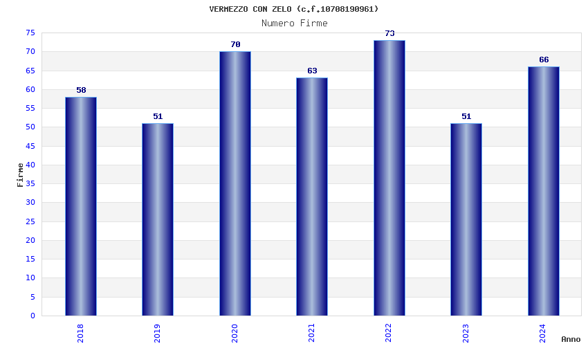 | Anno | Firme | Importi | Media | Naz. | Reg. | Prov. | Comu. |