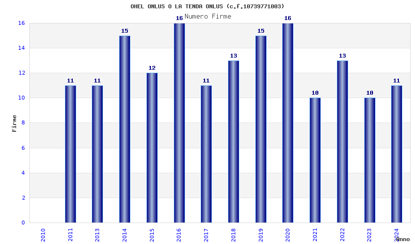 | Anno | Firme | Importi | Media | Naz. | Reg. | Prov. | Comu. |