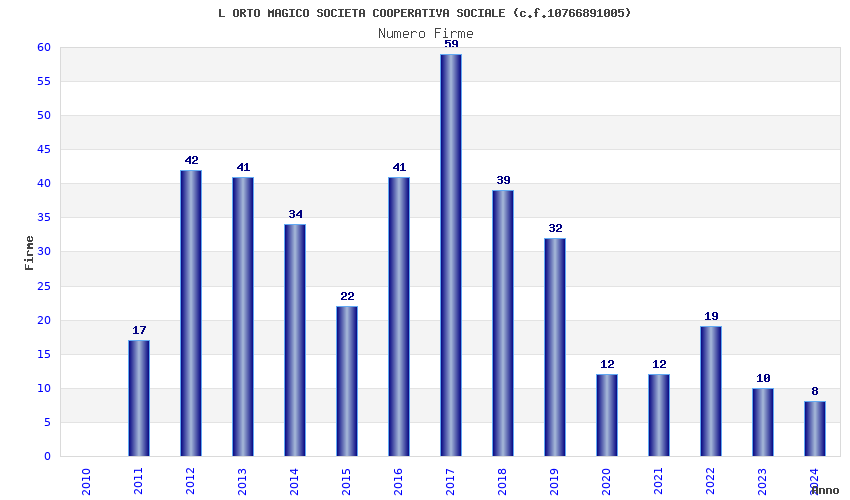 | Anno | Firme | Importi | Media | Naz. | Reg. | Prov. | Comu. |