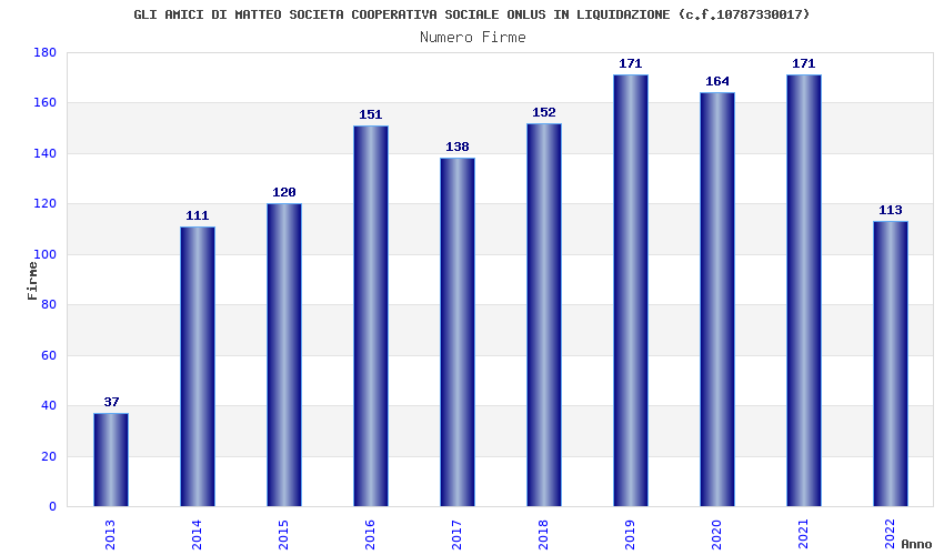 | Anno | Firme | Importi | Media | Naz. | Reg. | Prov. | Comu. |
