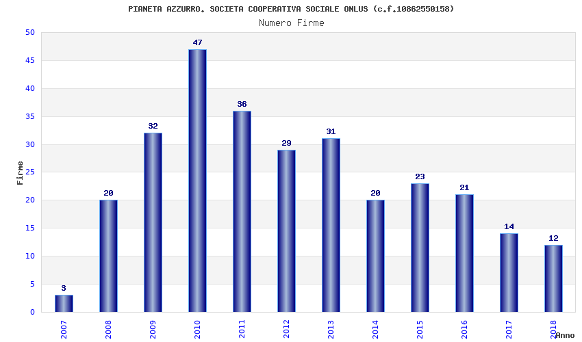 | Anno | Firme | Importi | Media | Naz. | Reg. | Prov. | Comu. |