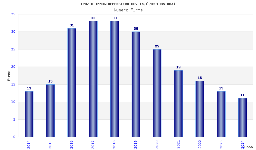 | Anno | Firme | Importi | Media | Naz. | Reg. | Prov. | Comu. |
