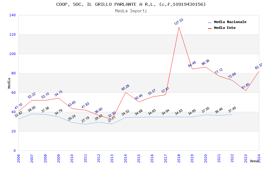 | Anno | Firme | Importi | Media | Naz. | Reg. | Prov. | Comu. |