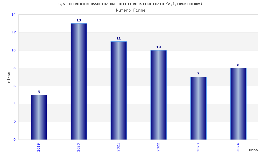 | Anno | Firme | Importi | Media | Naz. | Reg. | Prov. | Comu. |