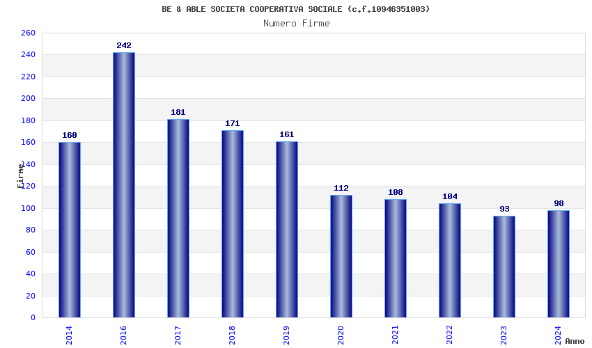 | Anno | Firme | Importi | Media | Naz. | Reg. | Prov. | Comu. |