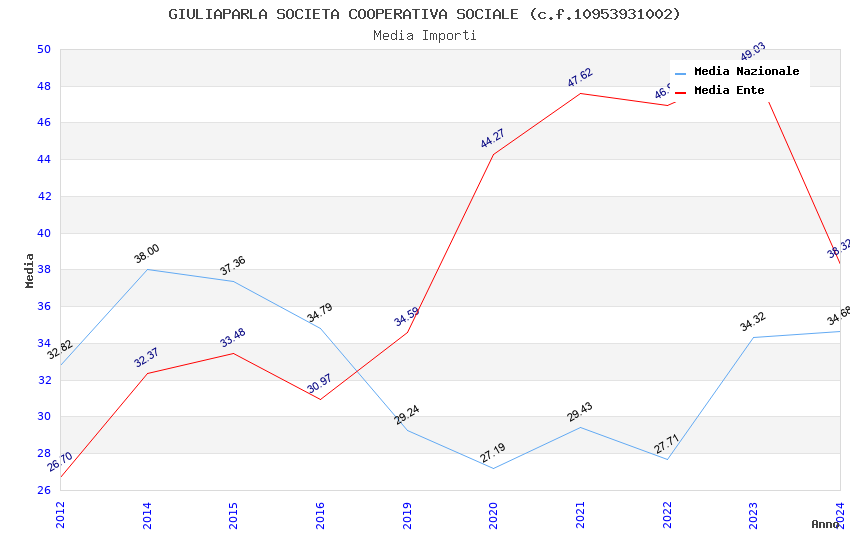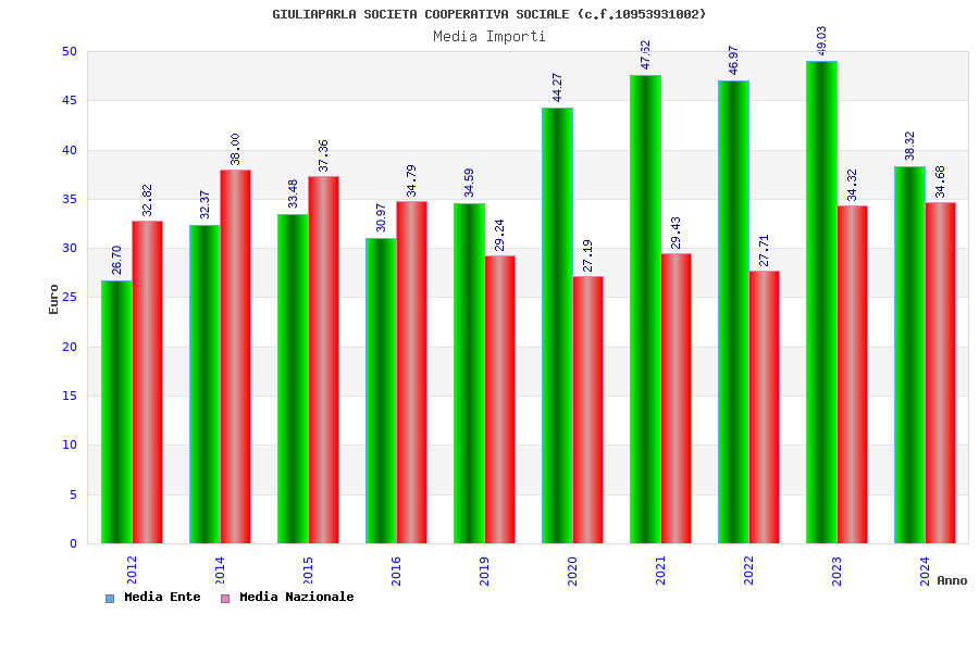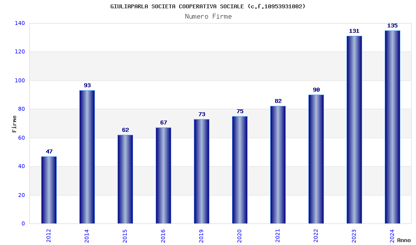 | Anno | Firme | Importi | Media | Naz. | Reg. | Prov. | Comu. |