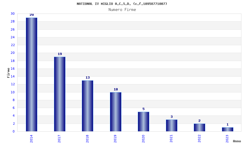 | Anno | Firme | Importi | Media | Naz. | Reg. | Prov. | Comu. |