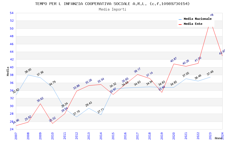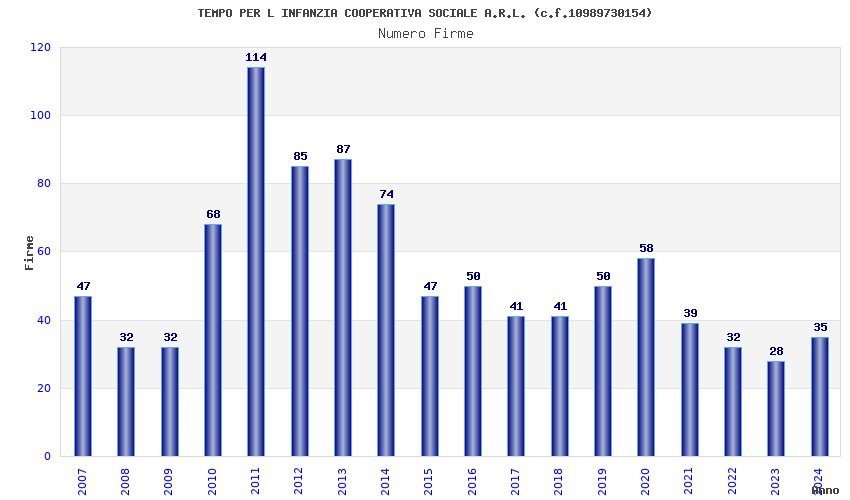 | Anno | Firme | Importi | Media | Naz. | Reg. | Prov. | Comu. |