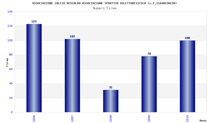 | Anno | Firme | Importi | Media | Naz. | Reg. | Prov. | Comu. |