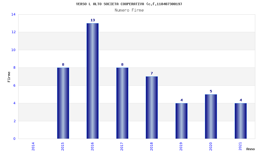 | Anno | Firme | Importi | Media | Naz. | Reg. | Prov. | Comu. |