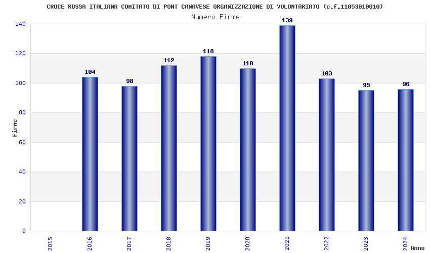 | Anno | Firme | Importi | Media | Naz. | Reg. | Prov. | Comu. |