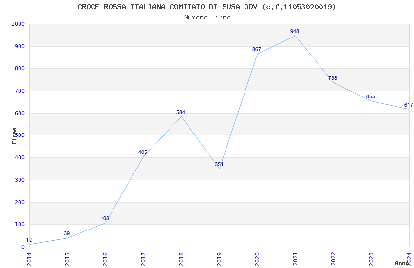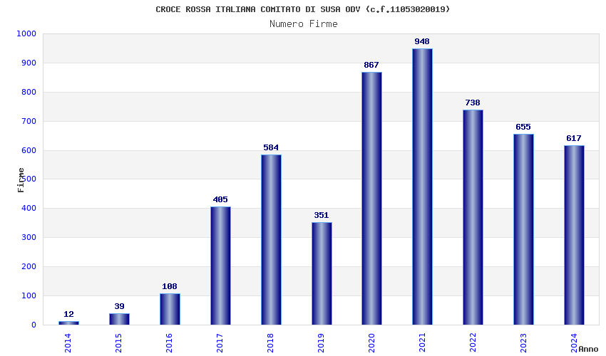 | Anno | Firme | Importi | Media | Naz. | Reg. | Prov. | Comu. |
