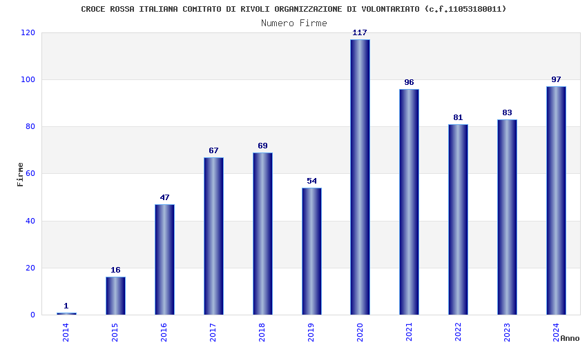 | Anno | Firme | Importi | Media | Naz. | Reg. | Prov. | Comu. |