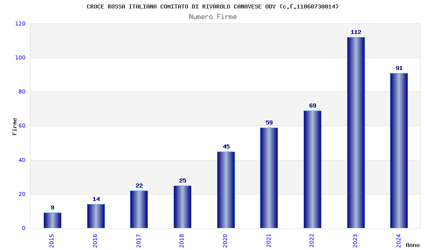 | Anno | Firme | Importi | Media | Naz. | Reg. | Prov. | Comu. |