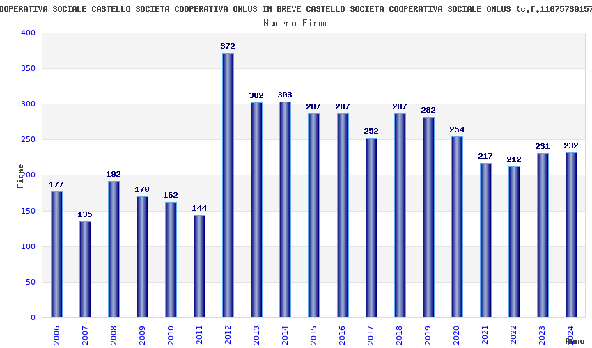 | Anno | Firme | Importi | Media | Naz. | Reg. | Prov. | Comu. |