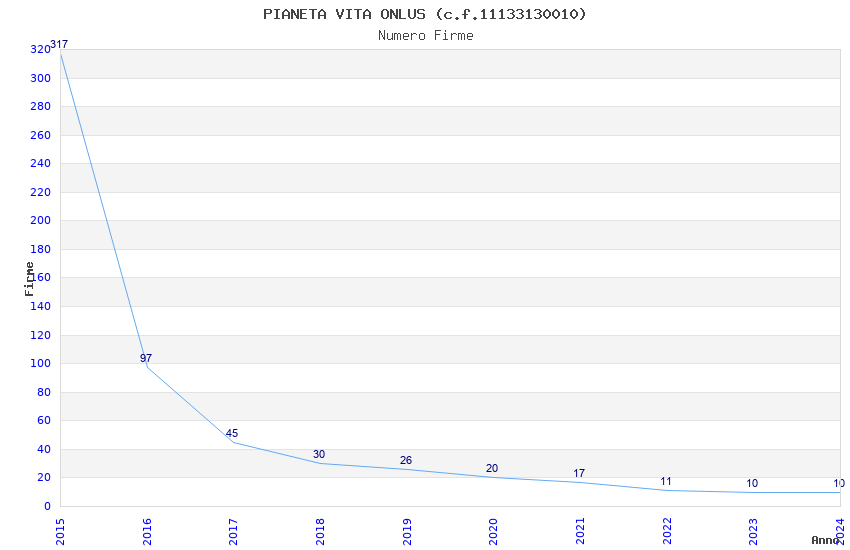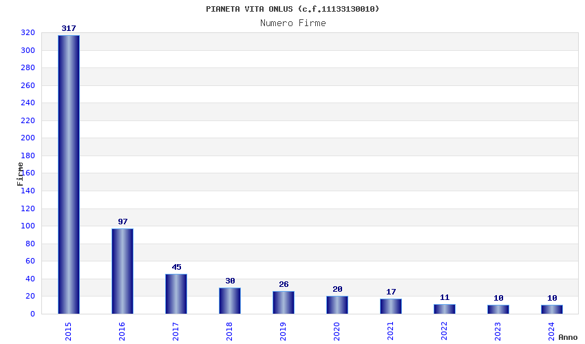 | Anno | Firme | Importi | Media | Naz. | Reg. | Prov. | Comu. |