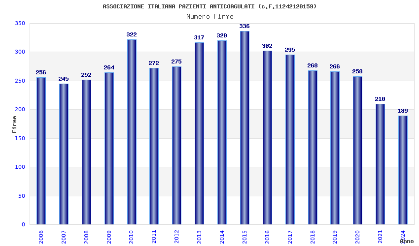 | Anno | Firme | Importi | Media | Naz. | Reg. | Prov. | Comu. |