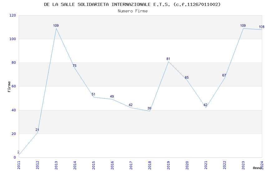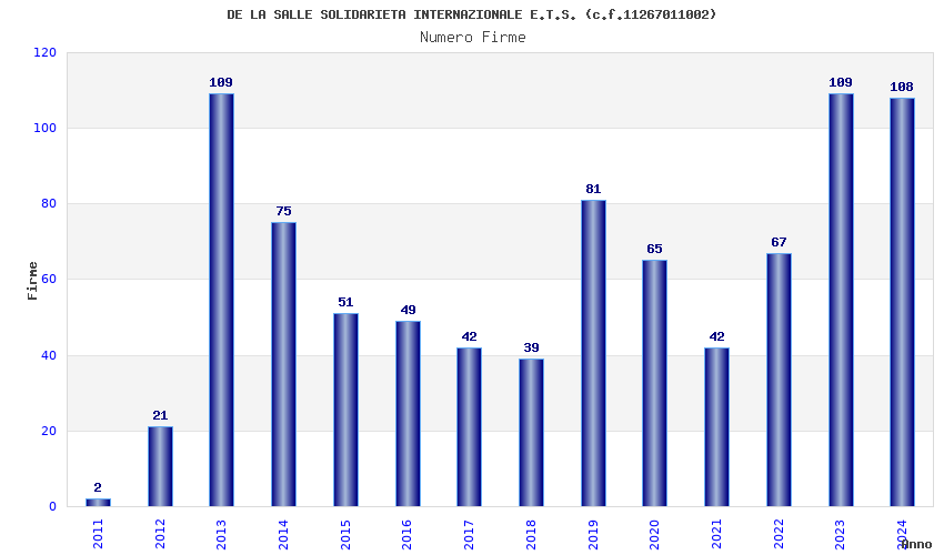 | Anno | Firme | Importi | Media | Naz. | Reg. | Prov. | Comu. |