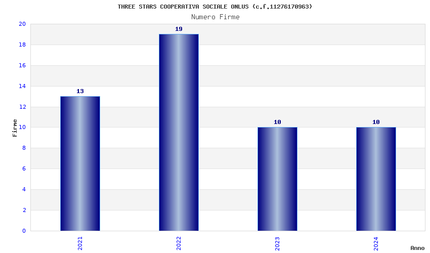 | Anno | Firme | Importi | Media | Naz. | Reg. | Prov. | Comu. |