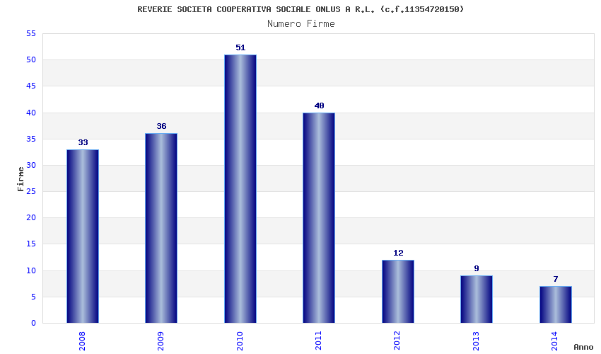 | Anno | Firme | Importi | Media | Naz. | Reg. | Prov. | Comu. |