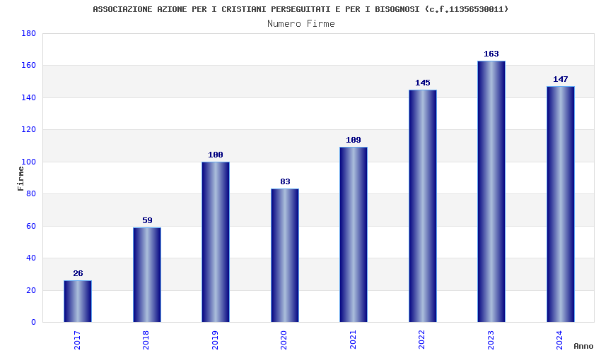 | Anno | Firme | Importi | Media | Naz. | Reg. | Prov. | Comu. |