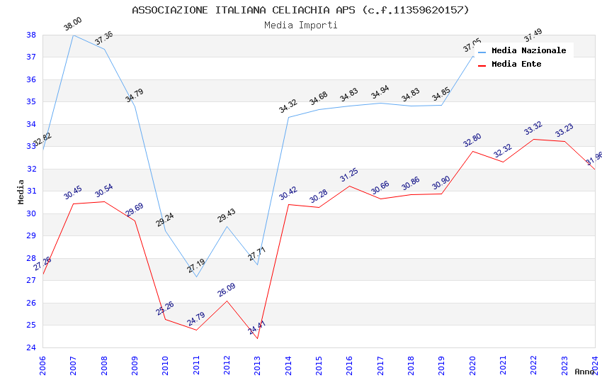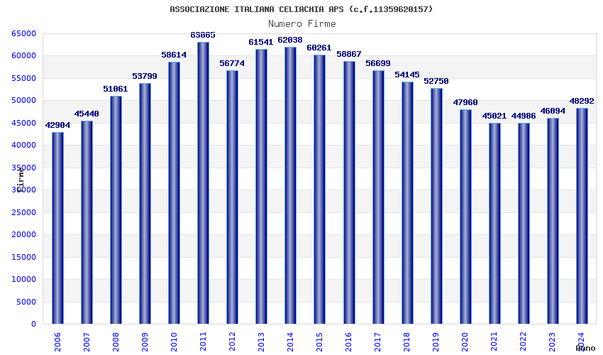 | Anno | Firme | Importi | Media | Naz. | Reg. | Prov. | Comu. |