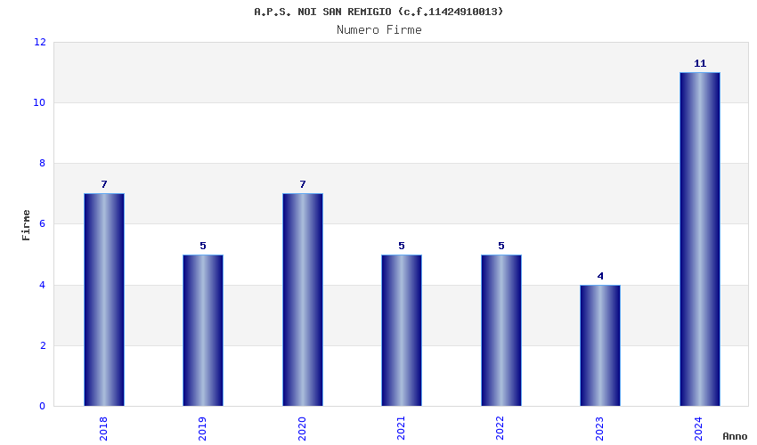 | Anno | Firme | Importi | Media | Naz. | Reg. | Prov. | Comu. |