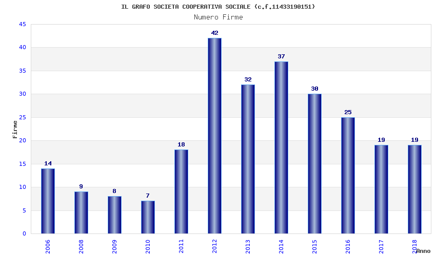| Anno | Firme | Importi | Media | Naz. | Reg. | Prov. | Comu. |