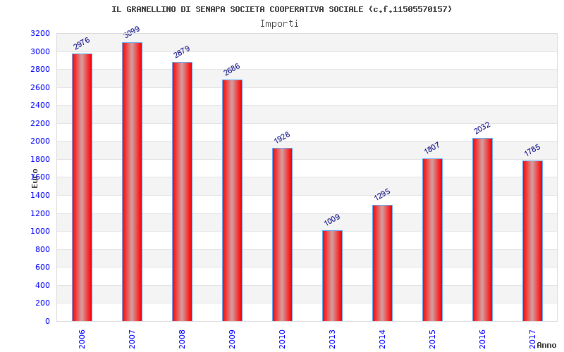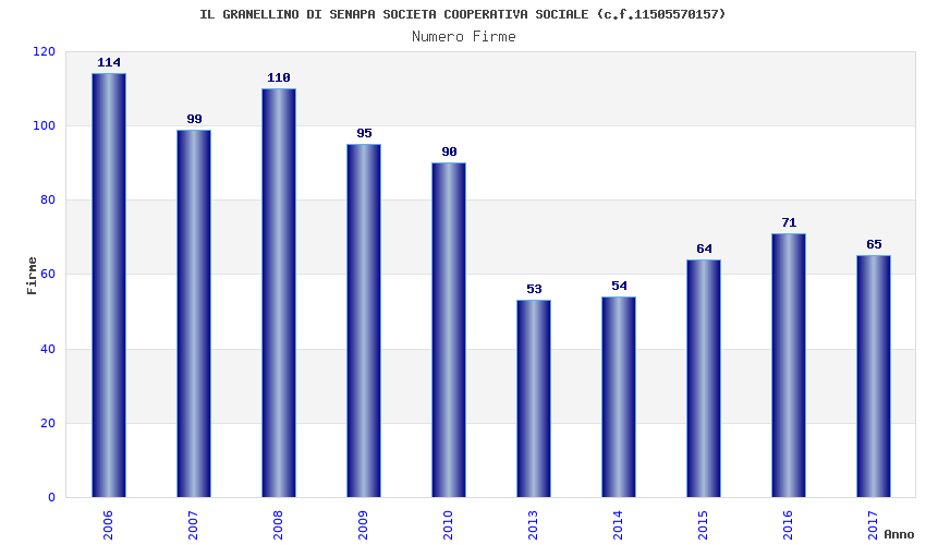 | Anno | Firme | Importi | Media | Naz. | Reg. | Prov. | Comu. |
