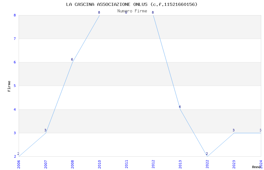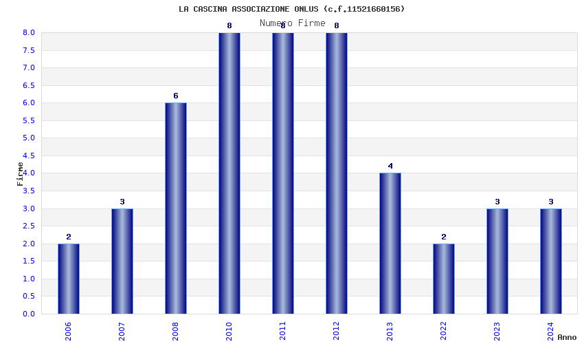 | Anno | Firme | Importi | Media | Naz. | Reg. | Prov. | Comu. |