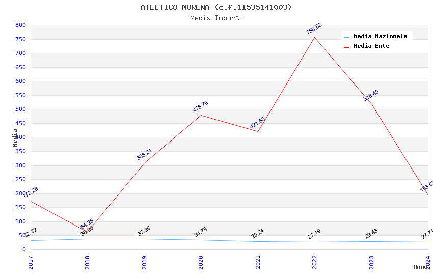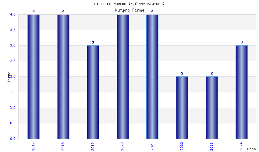 | Anno | Firme | Importi | Media | Naz. | Reg. | Prov. | Comu. |