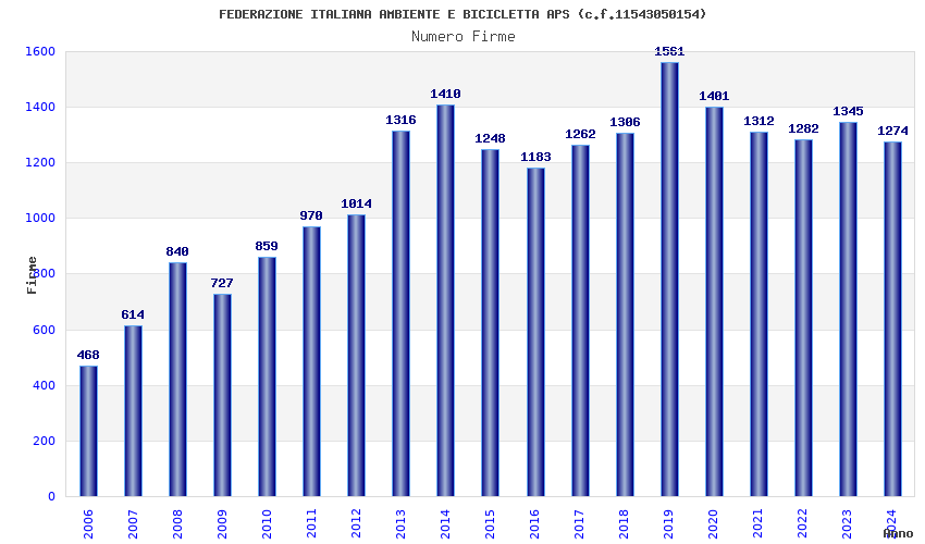 | Anno | Firme | Importi | Media | Naz. | Reg. | Prov. | Comu. |