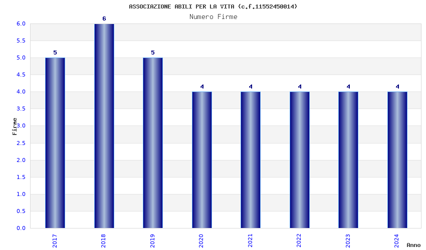 | Anno | Firme | Importi | Media | Naz. | Reg. | Prov. | Comu. |