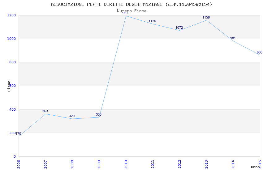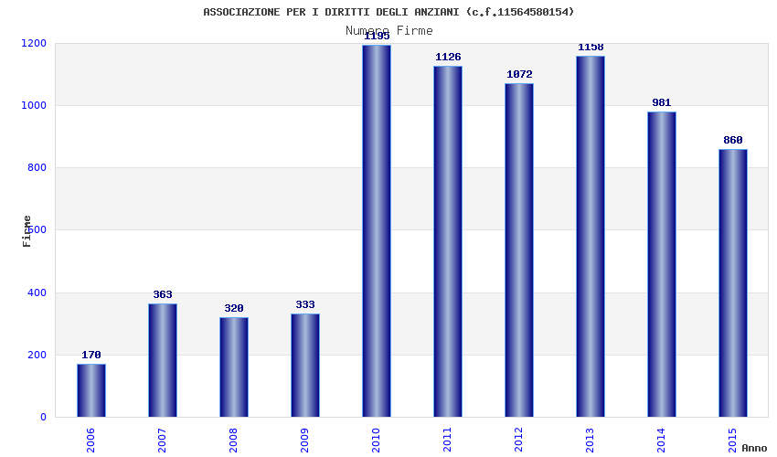| Anno | Firme | Importi | Media | Naz. | Reg. | Prov. | Comu. |