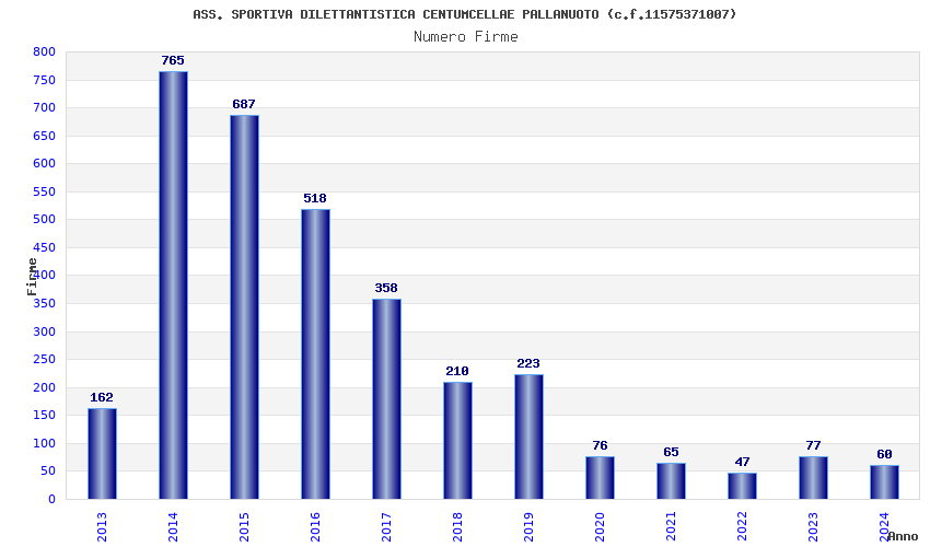 Anno Firme Importi Media Naz. Reg. Prov. Comu.