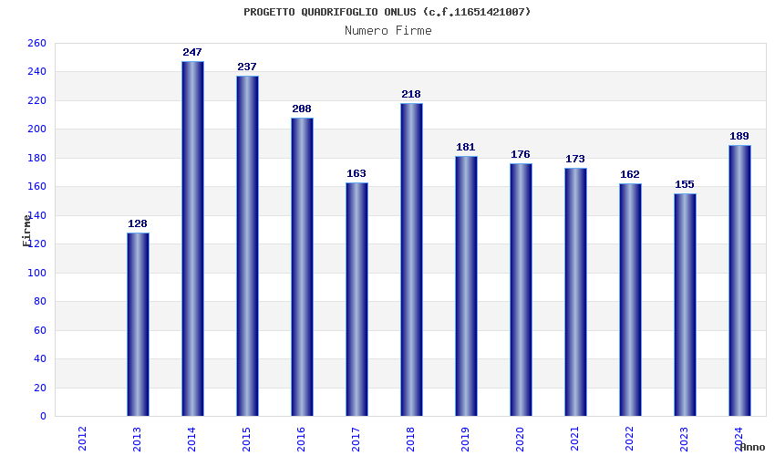 | Anno | Firme | Importi | Media | Naz. | Reg. | Prov. | Comu. |