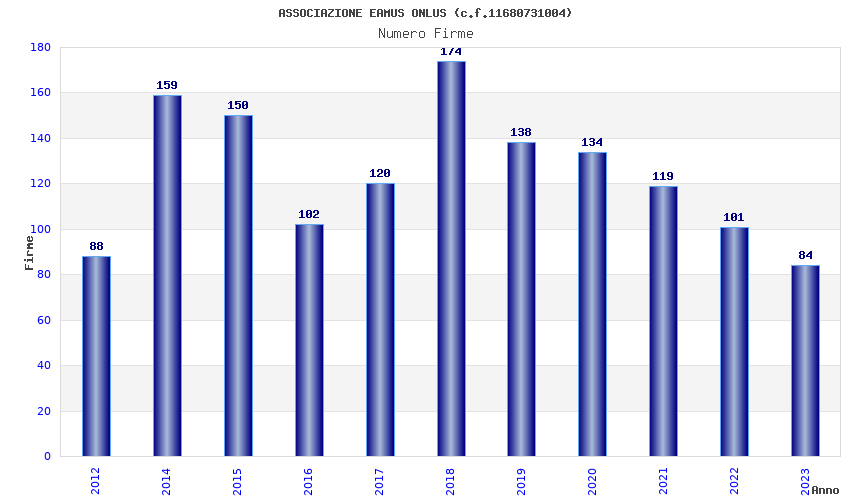 | Anno | Firme | Importi | Media | Naz. | Reg. | Prov. | Comu. |