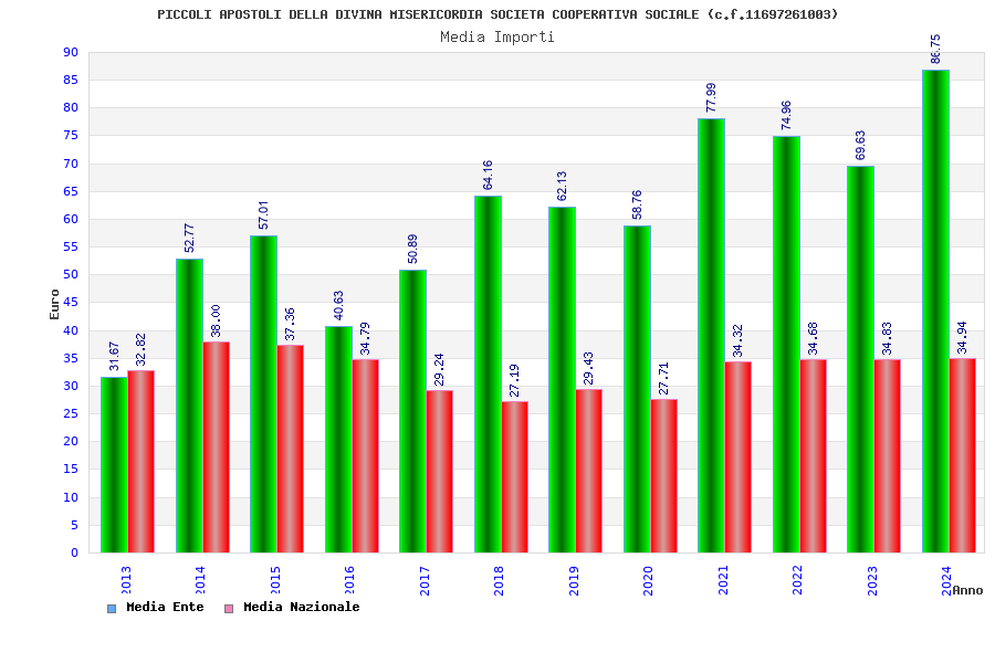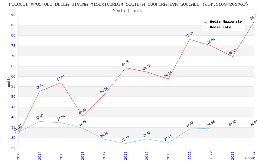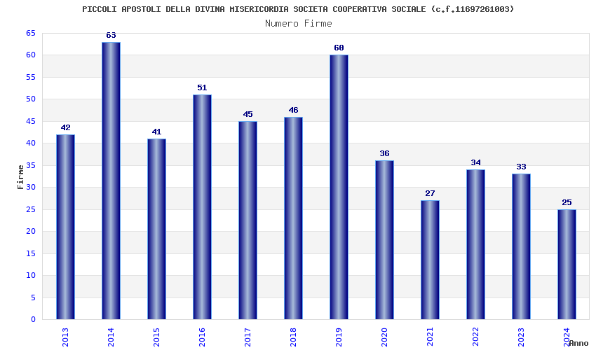 | Anno | Firme | Importi | Media | Naz. | Reg. | Prov. | Comu. |