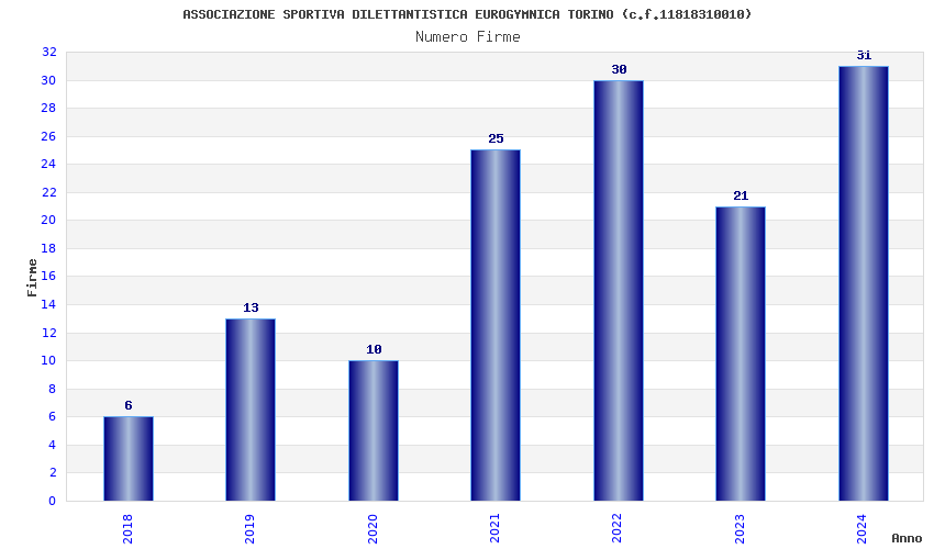 | Anno | Firme | Importi | Media | Naz. | Reg. | Prov. | Comu. |