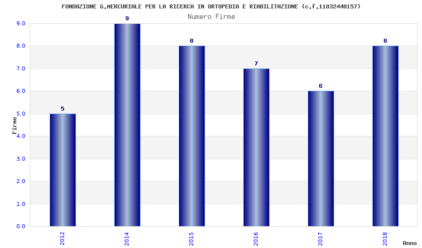 | Anno | Firme | Importi | Media | Naz. | Reg. | Prov. | Comu. |