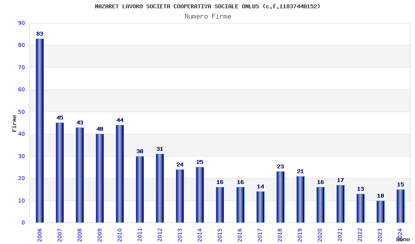 | Anno | Firme | Importi | Media | Naz. | Reg. | Prov. | Comu. |
