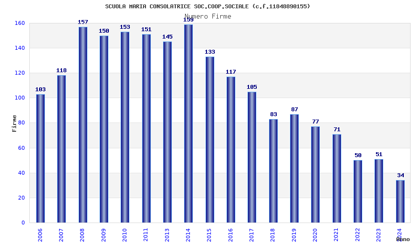 | Anno | Firme | Importi | Media | Naz. | Reg. | Prov. | Comu. |